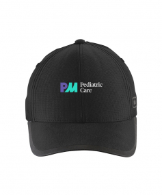 Fabric is 100% polyester pinhole woven mesh with structured profile, mid features, black reflective O heat transfer on side panel black reflective welding on bill, and OGIO seam taping. Low-profile hook and loop with black reflective stacked O heat transfers.